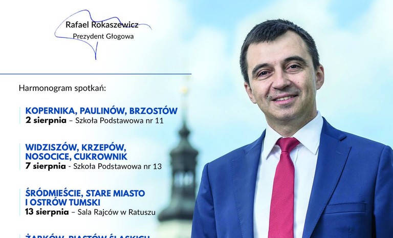 Drodzy Głogowianie,Już po raz czwarty serdecznie zapraszam na spotkania na Waszych osiedlach, na których porozmawiamy o potrzebach naszego miasta. Moją najważniejszą zasadą w pracy prezydenta jest ...
