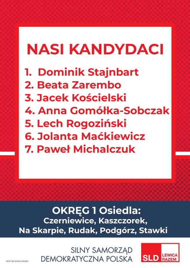 Prezentujemy kandydatki i kandydatów startujących w ramach Koalicyjnego Komitetu Wyborczego SLD Lewica Razem do Rady Miasta Torunia oraz program wyborczy – „Toruń Miastem Przyjaznym".
