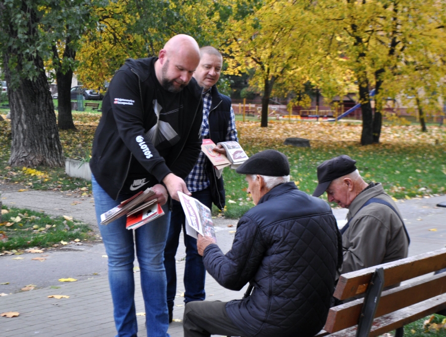 W czasie tego spotkania rozdawaliśmy gazetę " Głos Lewicy " , ulotki, gadżety, smycze, broszury, kalendarze i inne.