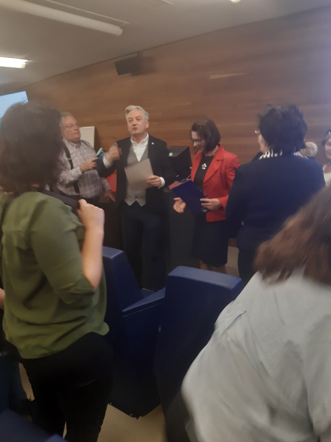 Odbyliśmy też bardzo oczekiwane przez nas , ciekawe spotkanie z europosłem do parlamentu Europejskiego- Robertem Biedroniem, który opowiadał nam o swojej pracy oraz o stanowieniu prawa w Parlamencie Europejskim. Następnie mieliśmy okazję do wspólnego zdjęcia całej grupy z Robertem, po czym Robert osobiście zaprowadził nas na galerię dla gości, gdzie wspólnie z nim wysłuchaliśmy dyskusji na temat tranzytu zboża z Ukrainy oraz o korupcji w Europie. Akurat przemawiał w sprawie zboża polski Komisarz Janusz Wojciechowski.