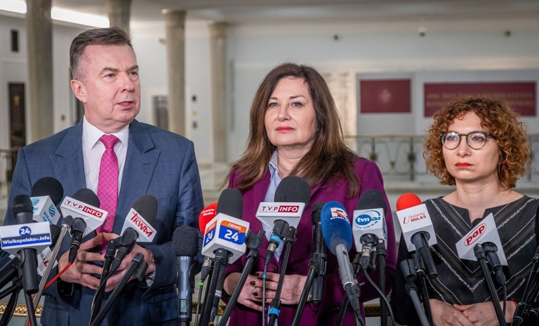 - Składamy projekt ustawy, który obniża podatek VAT na pasażerskie bilety kolejowe z 8 proc. do 0 – oświadczyli posłowie Lewicy Magdalena Biejat, Paulina Matysiak i Wiesław ...